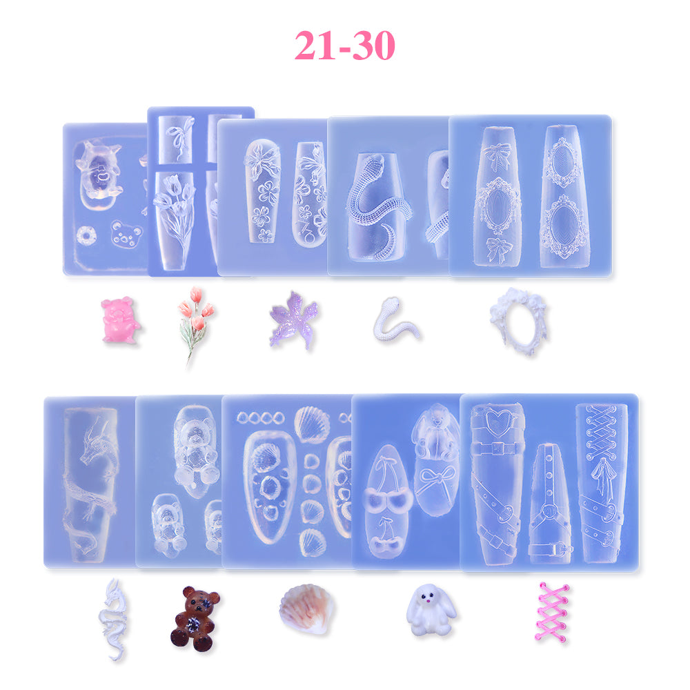 The upgraded silicone 3d Nail Art mold is molded with real human nails, so the accessories made have a certain curvature, which can perfectly fit the curvature of the nails, and the effect will be more perfect. Use these high transparency silicone nail art mold to diy your own nail charms. Super Simple and convenient! Have a Try!