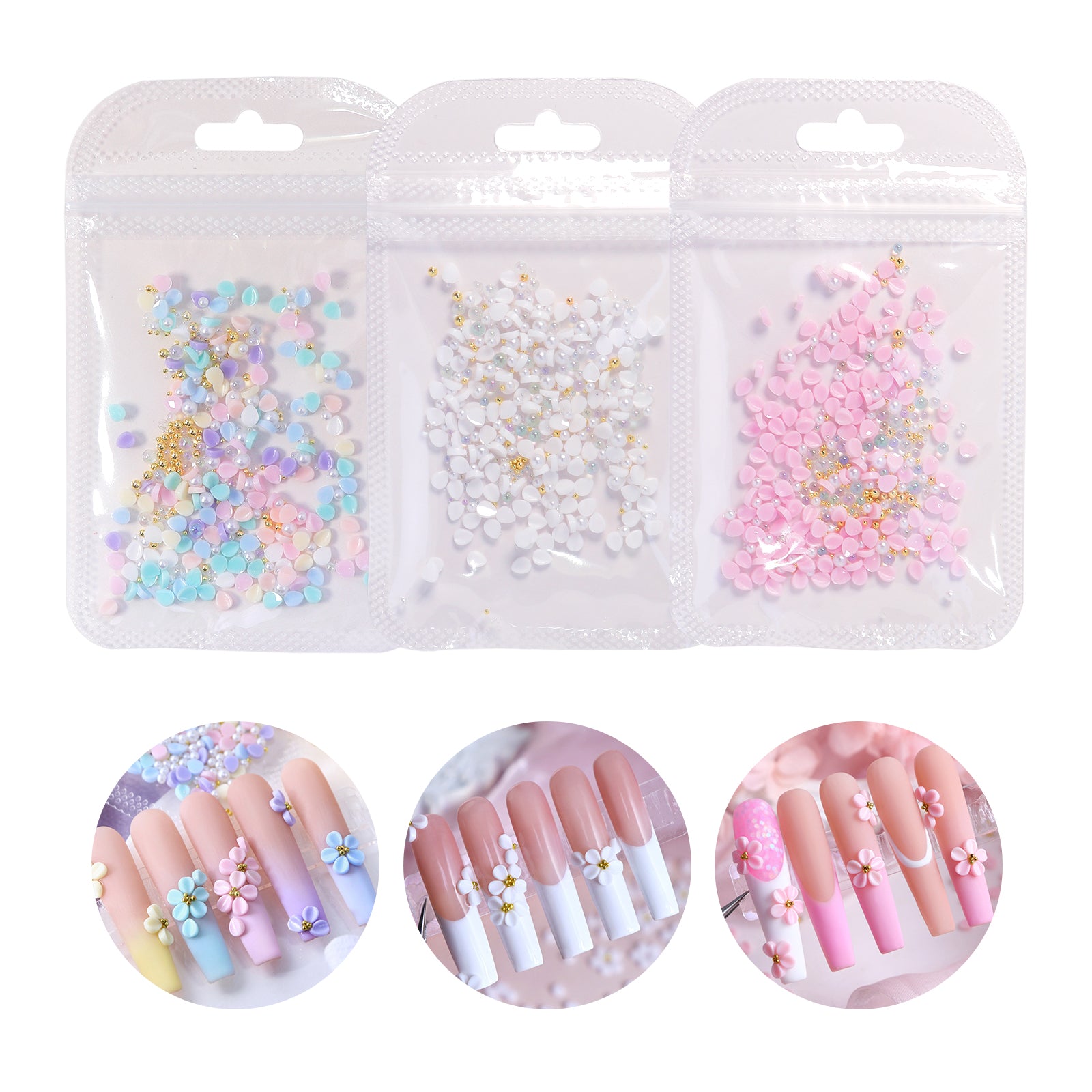 Cute and fashionable nail decor of 3d carved flower petals, pearls,caviar beads. Suitable for all nails, allowing you to create your own style of nail art.