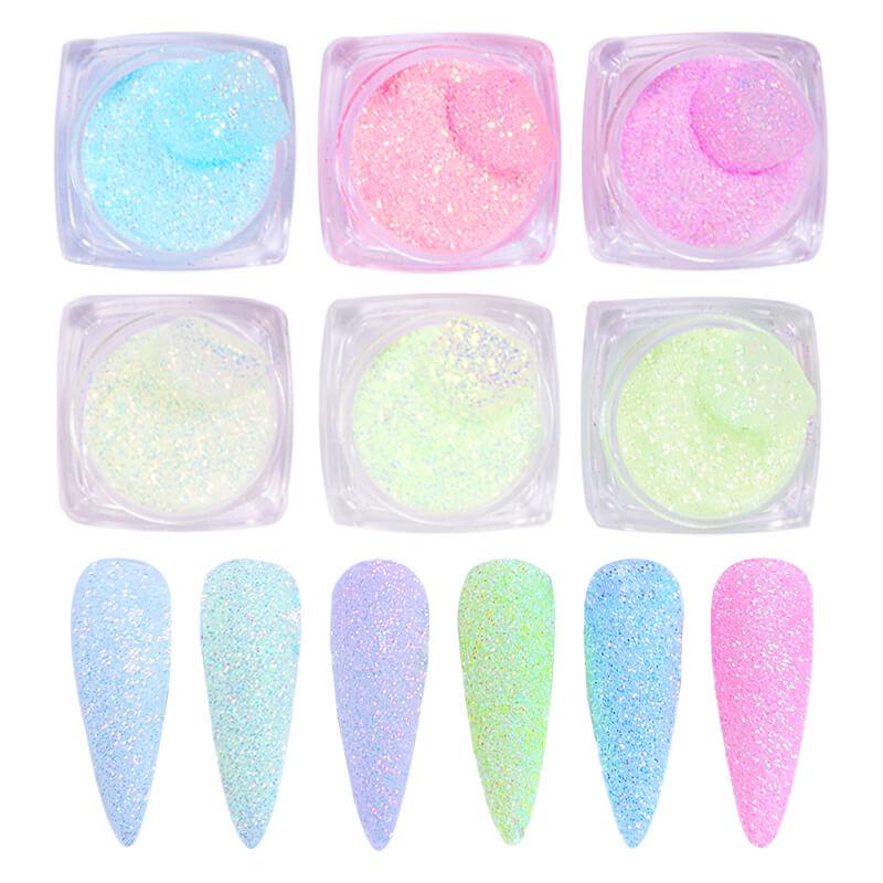 6 Colors Glow In Dark Nail Glitter Powders x 1