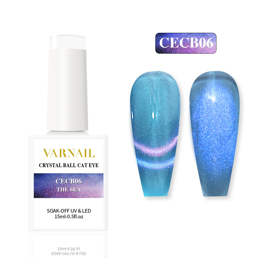 Why do we name this cat eye gel Crystal Ball? Because the magnetic powder used in this cat eye gel is different from other magnetic powders, the magnetic powder is very delicate and fine. So the final effect is not just a chameleon double color. It also has a delicate luster like silk, agility like spring water, more like a dreamy crystal ball, unpredictable, and very magical! You can apply it directly, make a French design, or apply it on the black base color. Hurry up and try it out to discover more of its wonders!