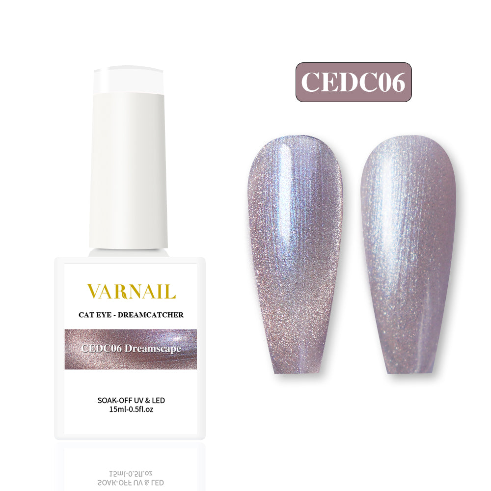 Dreamy, Mystic, and Aurora Shimmer is the big features of the VARNAIL Dreamcatcher Cat Eye Gel collection! Different Color Bases with matching different aurora shimmer make them so unique. May you be blessed with every sweet dream. Hope your every morning can feel the comfort and aftertaste brought to you by all the beautiful dreams.