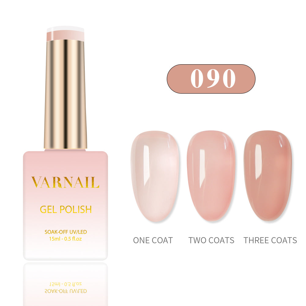 Our jelly syrup gel polish with perfect self-leveling feature, assures long lasting wear, smooth covergae and high-gloss shine. These translucent soak-off gel polish can be applied as a one, two or three coats, which bring more possibilities of nail look. One coat will give your nail a natural tint look, while adding more coats will