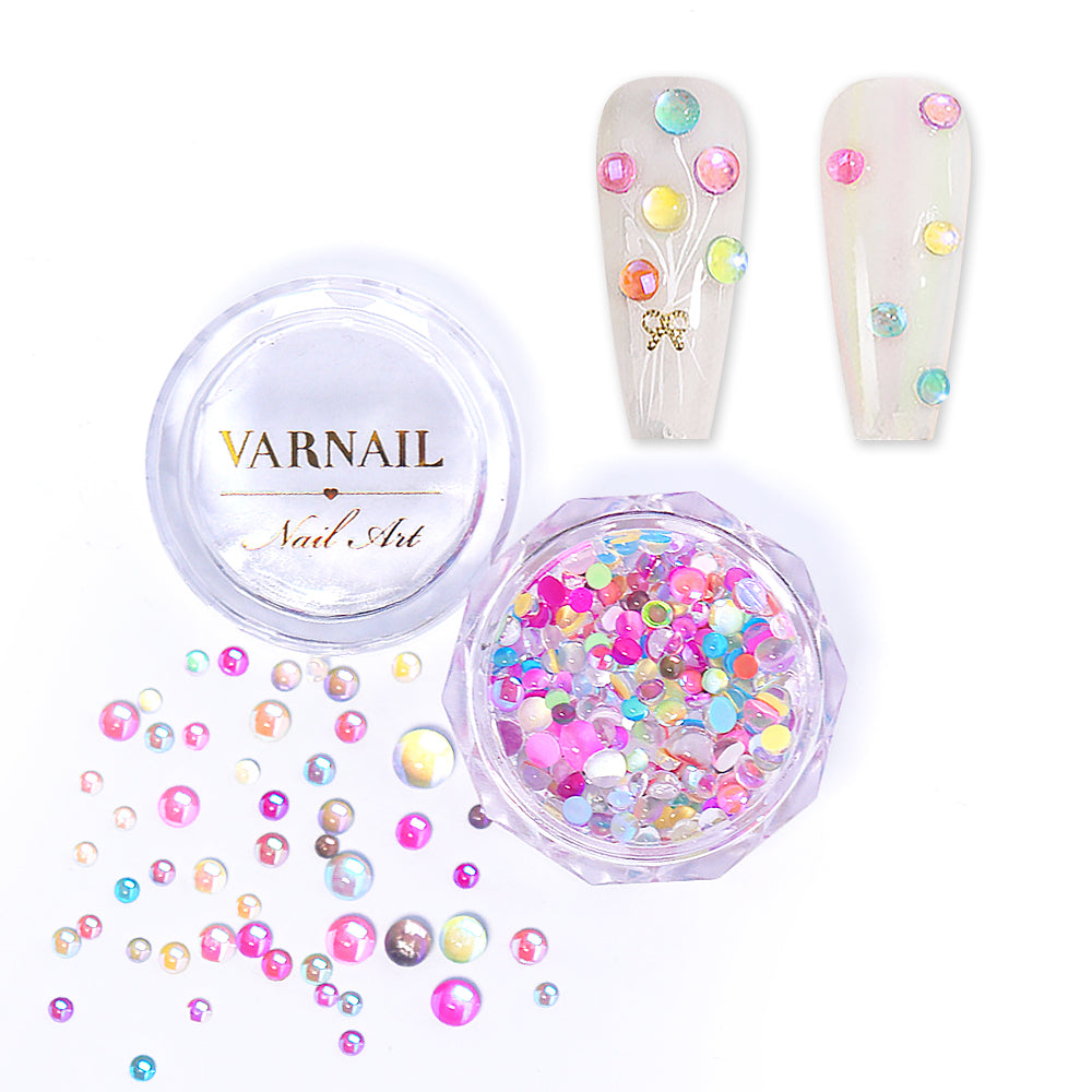 Cute and fashionable nail decor of mermaid bubble beads. Mixed sizes round beads which refracts colorful aurora dreamy shine under the different angles light. Suitable for all nails, allowing you to create your own style of nail art.