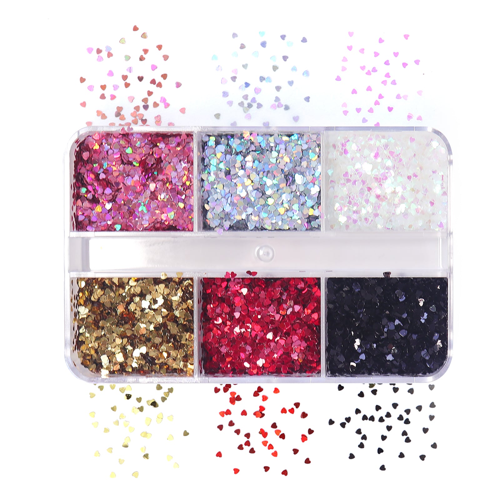 Heart Nail Glitters - 6 Grids for Valentine's Day Nails