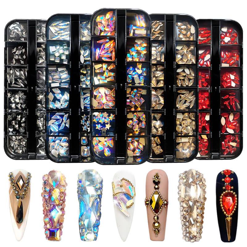 These multi-shaped colorful nail art rhinestones make your manicure extremely noble and stunning. Shop to make your own special design with these various shapes shining rhinestones!