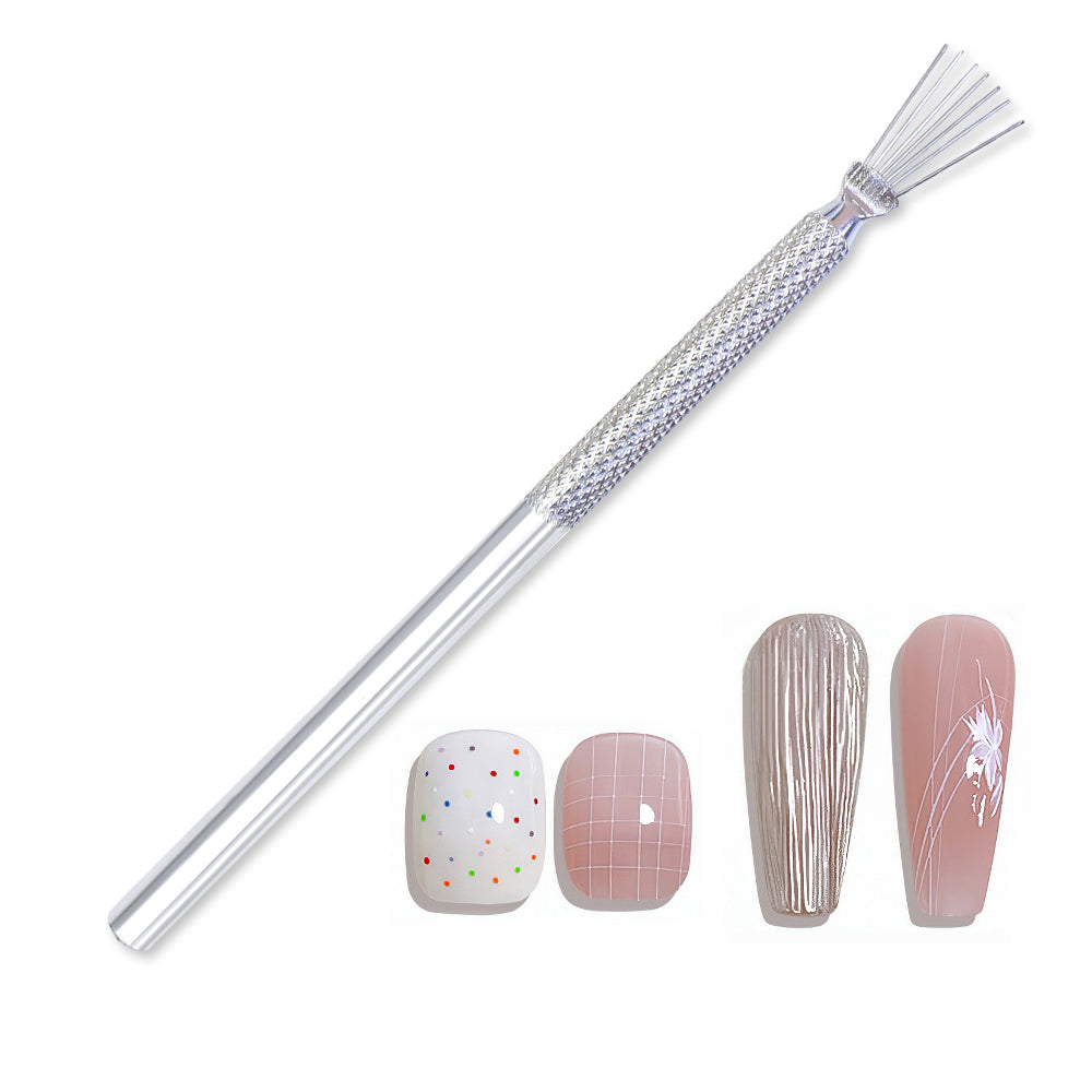 Nail art lovers should not miss this good helper 7-needle pen. Its pen head has 7 metal strips, you can use it to dip nail gel polish to draw various dots and lines. You can also bend them at will and use them with our Spider Gel to draw stripes and checkered plaid patterns.