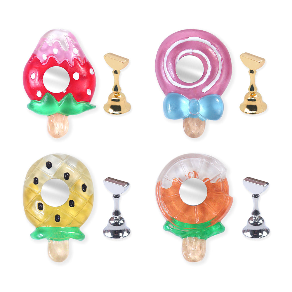 This lovely fruit patterns nail stand is perfect to display your nail works. Each base is equipped with a strong magnetic surface, which can easily absorb the iron sheet on the top of the base, which is easy to use and firm.