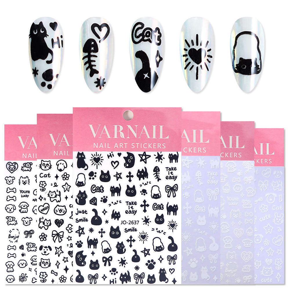 Or 6 Pcs/Set Nail Sticker - Cartoon Cat & Dog