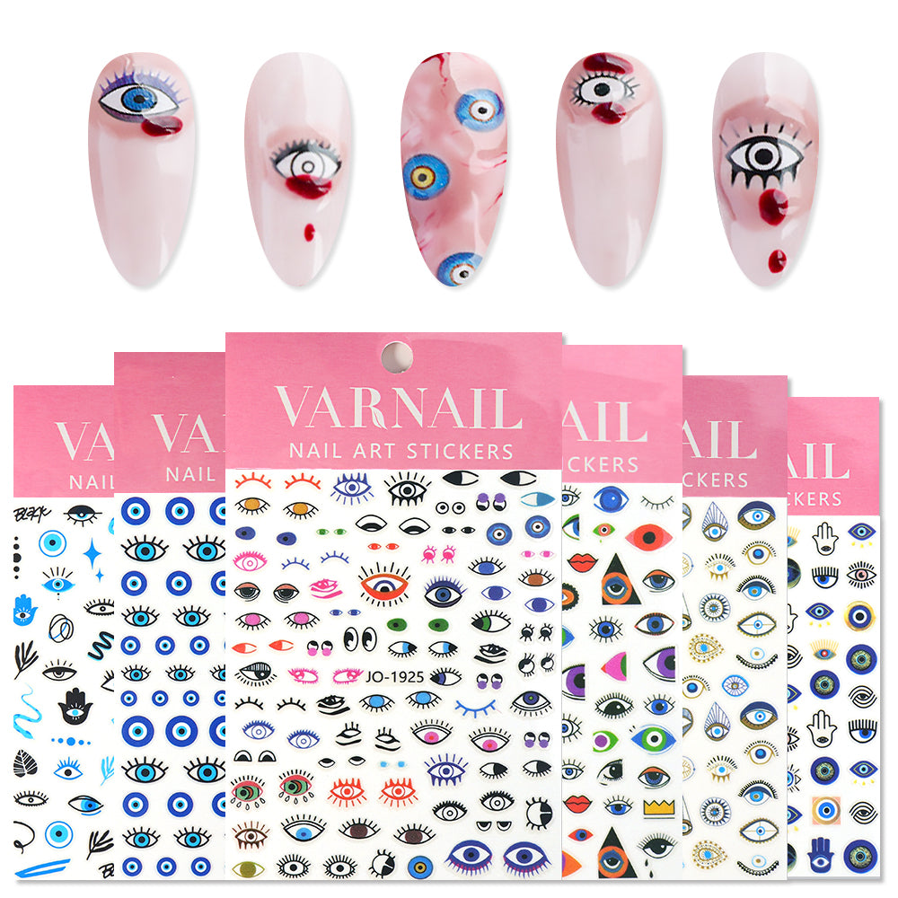 Evil eye sticker is vibrant is better than water slide decals for nails