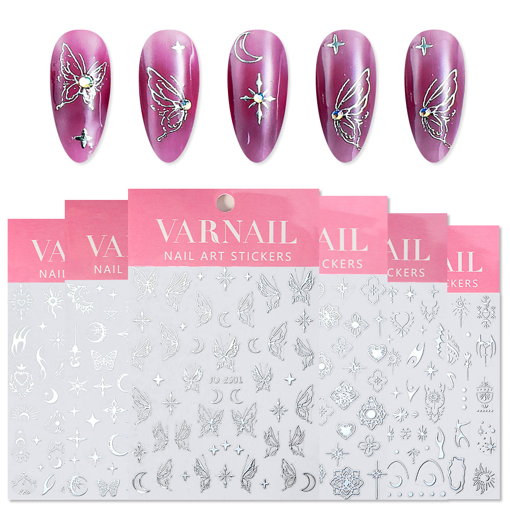 Or 6 Pcs/Set Nail Sticker - Metallic Silver (Sun,Moon, Butterfly)