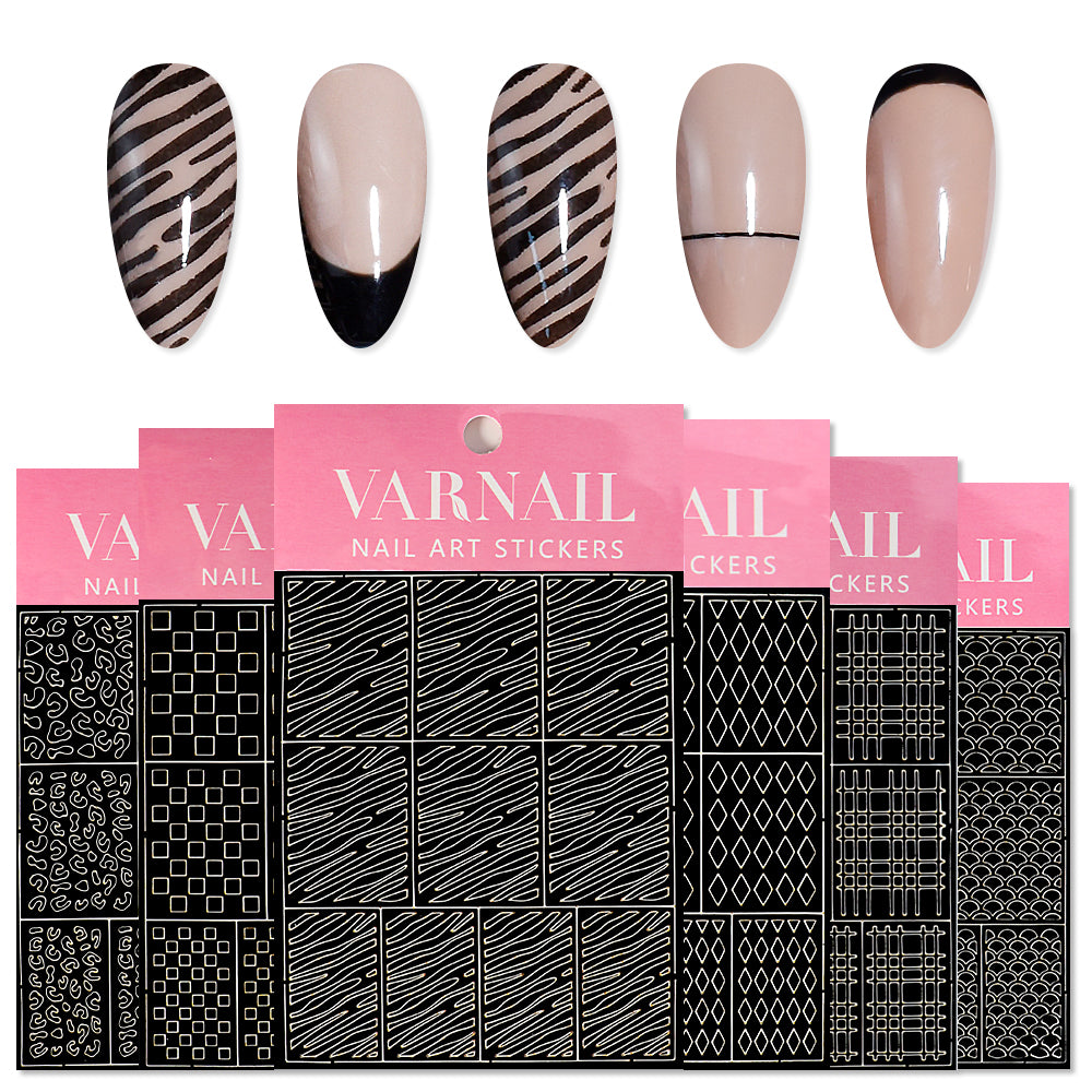 Or 6 Pcs/Set Hollow Inkjet Painting Plaid & Leopard Print Stencil Nail Art Sticker