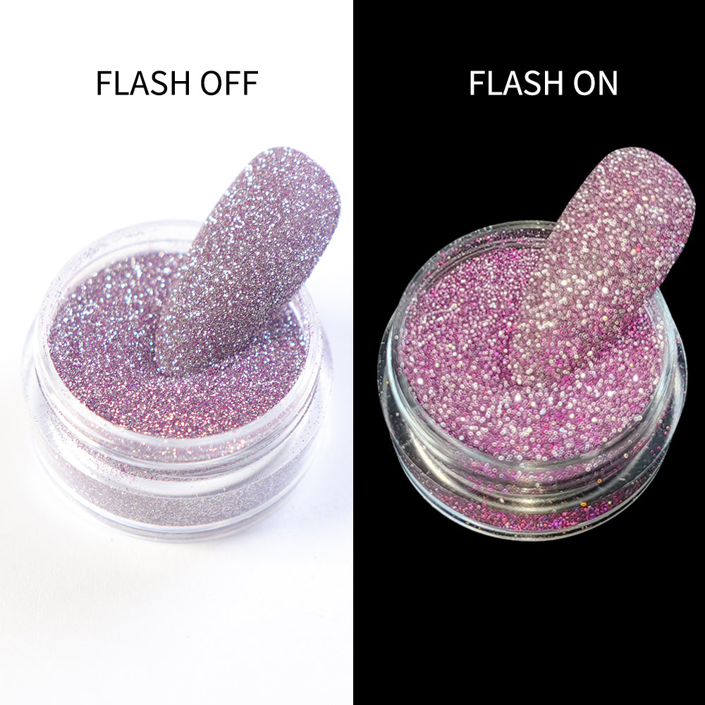 It shines like a diamond and reflects with the light, shining and luxurious. You can sprinkle it directly on the sticky rhinestone glue layer, or mix it with the mixing glue/gel to make your unique and most shining reflective gel.