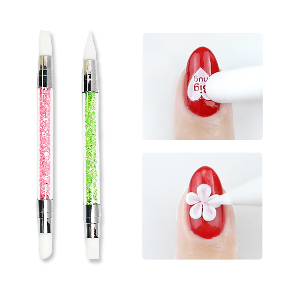 Soft silicone double sided nail art pen brush that is perfect for applying powders or glitters on your nails.