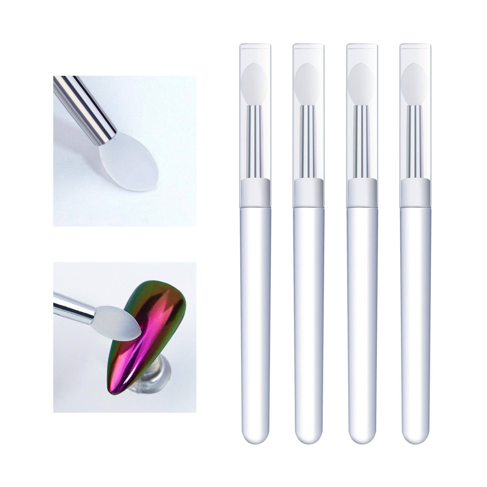 This Silicone Nail Powder Applicator is a great helper for applying nail powder, chrome and pigments. It has a silicone round brush head whch is easy to rub the chrome on the nails so shiny. And it is very easy to clean, just wipe it clean with a wet wipe and can be reused. Also, it comes with a matching lid, making it easy to store.