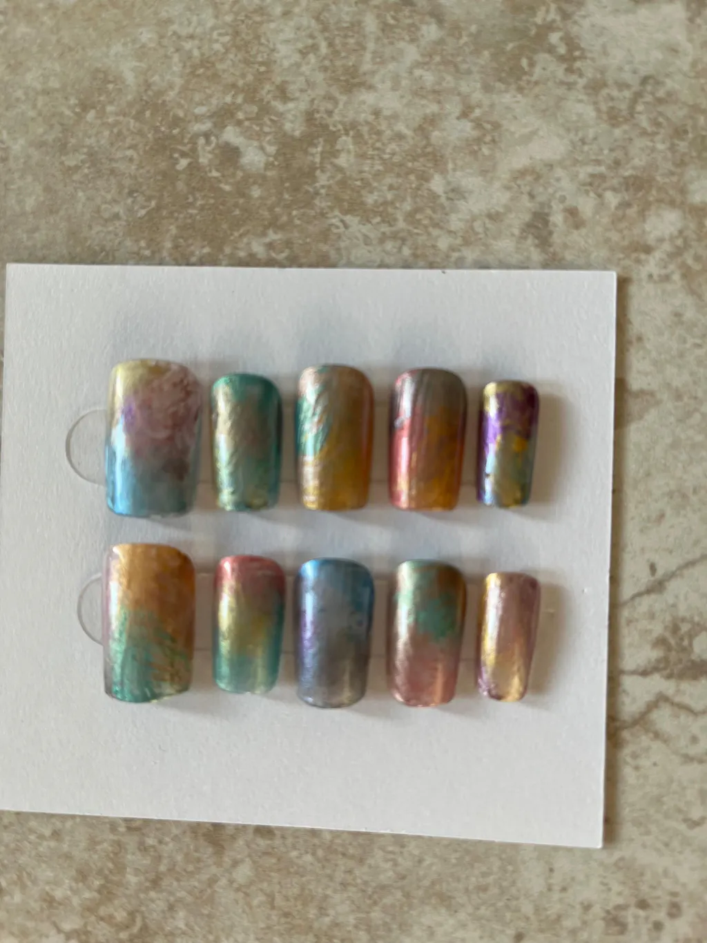 The Solid Shimmering Nail Art Watercolor Palette Galaxy is amazing. Easy to use; just add water and paint! The colors are beautiful and vibrant. I can't even draw stick figures but I can finger paint. Creating these pretty nails was even easier!