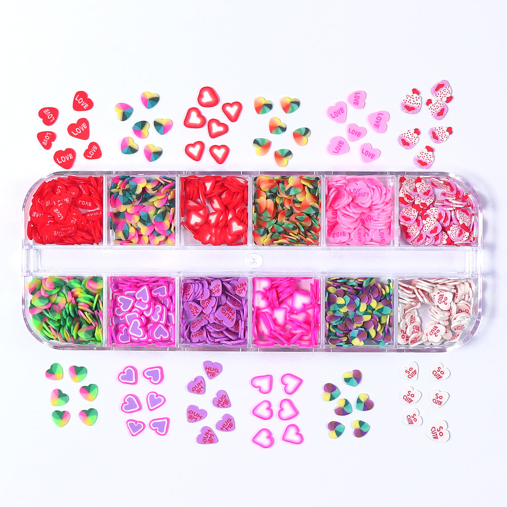 Valentine's Nail Soft Clay - 12 Grids for Valentine's Day Nails