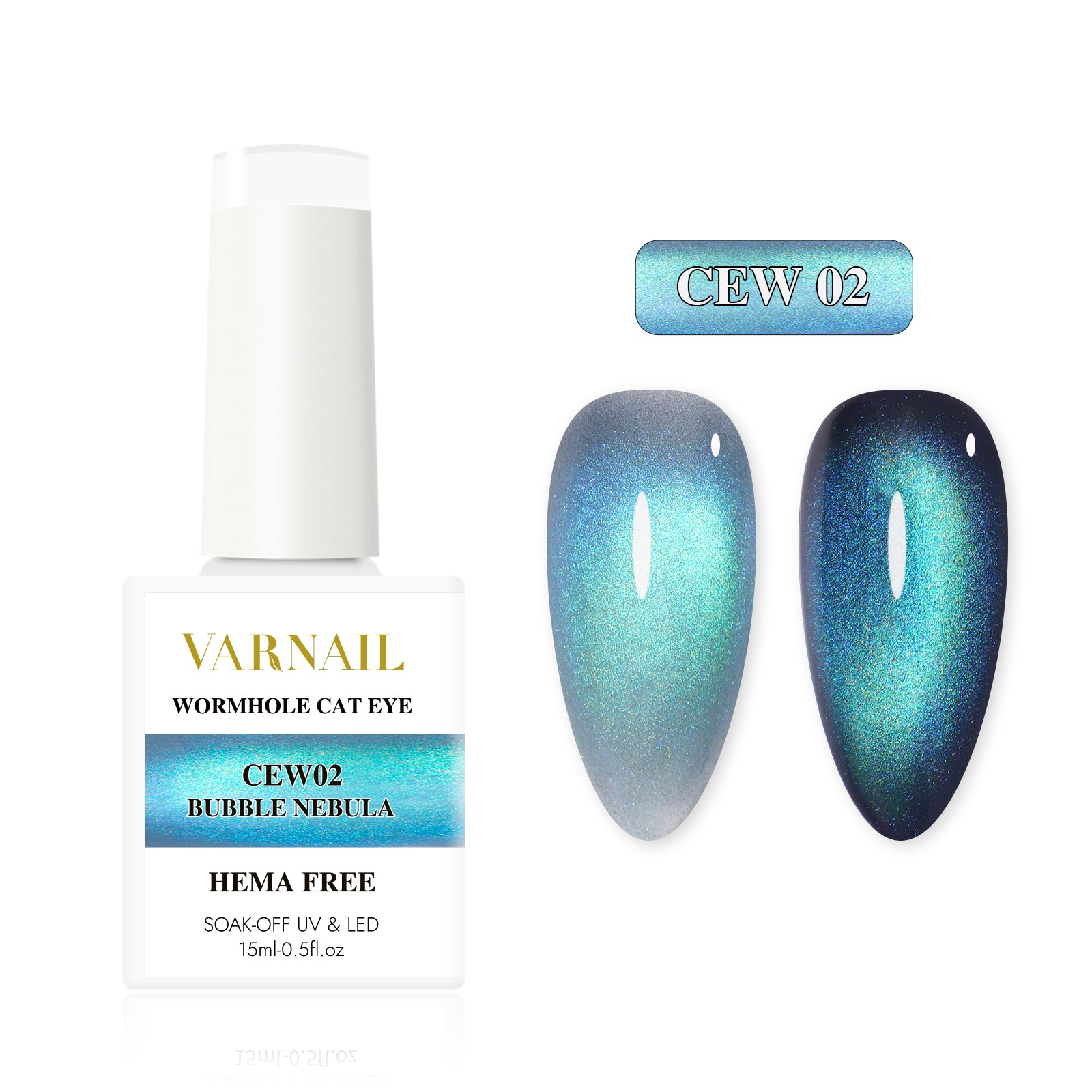 Want to embark on a mysterious journey through time and space with VARNAIL? Let's travel through wormholes and explore the magnificent, colorful universe together! Wormhole Cat Eye nail gel polish has no base color and features 2-4 different colors shine. Under different lighting conditions, you can see various colors! It can also be applied over any base color to create different iridescent cat eye nail effects!